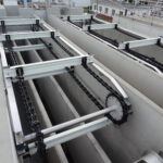 - Ефективне видалення осаду – ланцюгові скребки збирають осад і плаваючі речовини безперервно по всій довжині резервуара, використовуючи всі скребки замість одного пересувного мосту, що скорочує цикл праці та підвищує ефективність процесу.