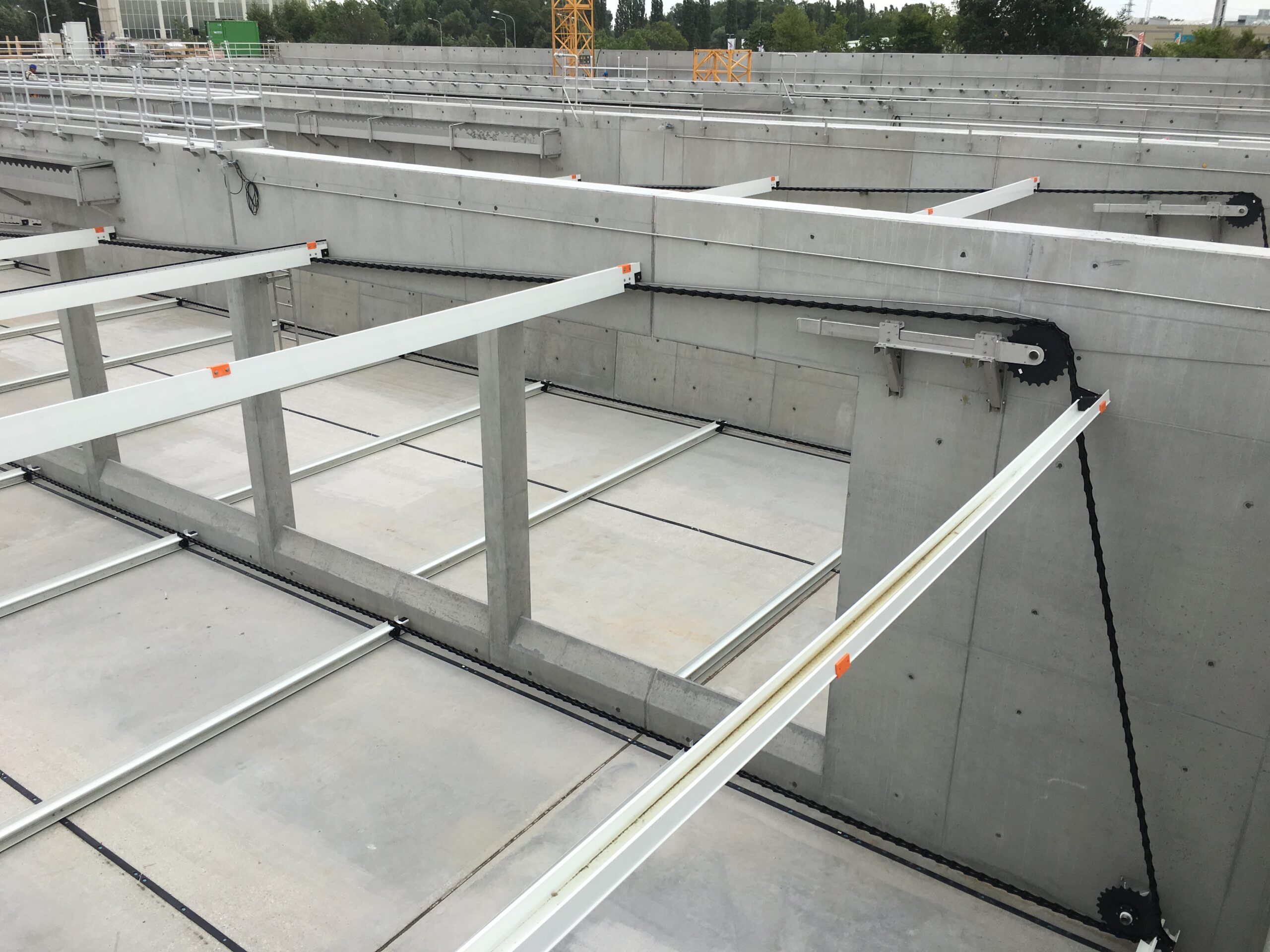 Вони є функціональною альтернативою системам на базі пересувного мосту зі скребковим механізмом, особливо при реконструкціях існуючих резервуарі. Це рішення суттєво зменшує навантаження на залізобетонну конструкцію порівняно з традиційними пересувними мостами.